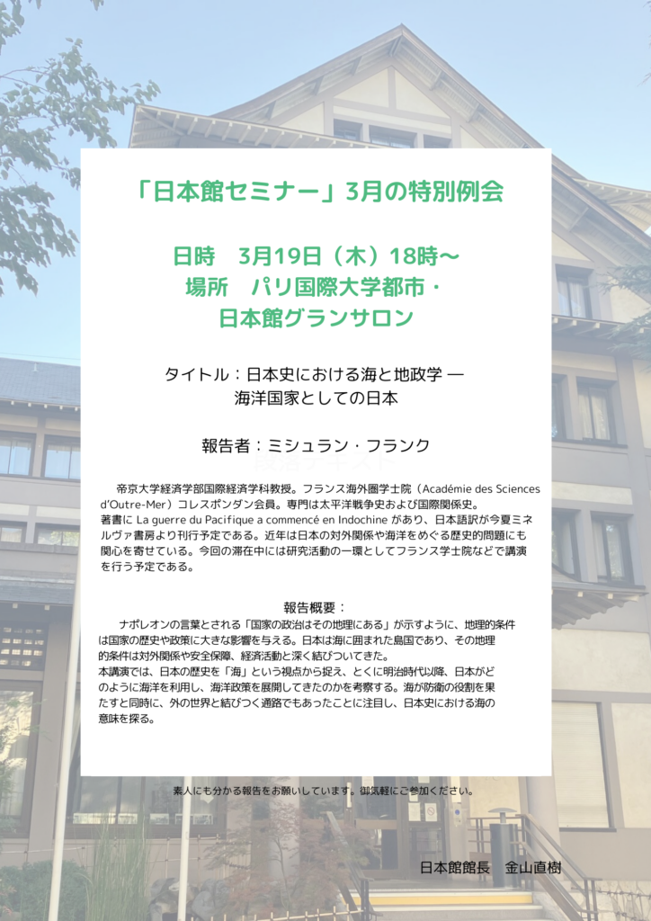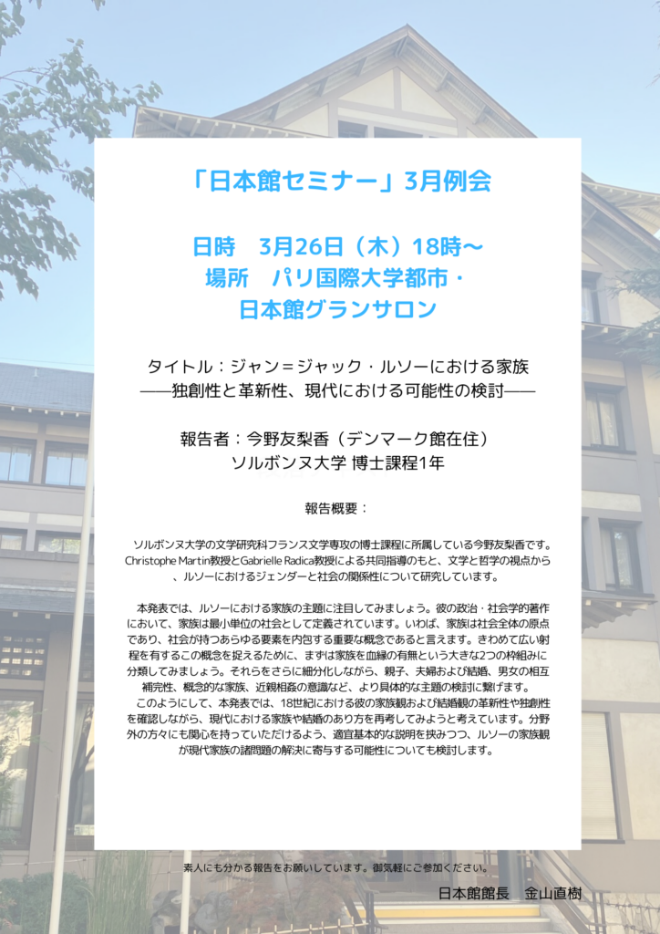 HISTOIRE DE TERRES – Des fleurs et des céramiquesLes 20, 21, 22 novembre à 13h -18h jeudi 20 jusqu’à 17hLes 20, 21, 22 novembre à 13h -18h jeudi 20 jusqu’à 17h Aujourd’hui, près de 85% des fleurs vendues chez les fleuristes en France sont importées paravion. Avant tout pour le bien de notre planète, Hélène Taquet, fondatrice de l’association Slowflower Collectif de la fleur française, et Mami Kanno, artiste céramiste japonaise, nous voulonsmettre en valeur les fleurs et plantes locales, simples et naturelles.Aimer la nature, les fleurs et préserver l’environnement mondial sont nos priorités actuelles. Cene sont pas seulement des idées idéalistes. Hélène suggère de nouvelles possibilités etopportunités commerciales aux jeunes, aux étudiants et bien sûr aux agriculteurs qui souhaitentse diversifier. Mami réalise elle-même la conception, la recherche la terre jusqu’à la cuisson. AuJapon, on nomme par exemple la face d’un bol ou d’une assiette le “paysage”. Il est enharmonie avec le climat, la saison et l’esprit du moment présent. Vous découvrirez un histoire deterre, des fleurs et des céramiques.À propos de l’expositionNous exposerons des fleurs cultivées dans la ferme d’Helene située dans les Hauts de France,présentées avec des céramiques façonnées à partir de terre française, afin de créer un lientangible avec notre vie ici.La Cité Internationale Universitaire de Paris abrite plus de 40 maisons nationales, et accueilledes étudiants et chercheurs venus de quelques 130 pays. À l’approche de Noël, noussouhaitons que chacun puisse repartir avec un mini bouquet et un vase, comme un témoignagede ses souvenirs en France et un geste vers un futur plus respectueux de la nature.Hélène TaquetAgricultrice, formatrice, autrice – Fondatrice du Collectif de la Fleur FrançaiseElle est la pionnière du retour à la consommation de fleurs françaises cultivées localement. Sesactivités ont été présentées dans les journaux, à la télévision et dans les médias en Europe et auJapon.Mami KannoNée à Tokyo. Ancienne résidente de Maison du Japon. Diplômée de l’Université des Artsplastiques de Tokyo, également titulaire d’une Maîtrise de l’Université Pariset d’un DEA. Elleexpose depuis 2003 à Paris, Tokyo, Seattle et en Suisse. Son travail est soutenu par beaucoupdes journalistes, chefs de restaurant étoilé ainsi que des spécialistes de la cérémonie du thétraditionnel. Toutes œuvres sont des pièces uniques ExpositionHISTOIRE DE TERRES ̶ Des fleurs et des céramiques ̶陶器 菅野 麻美 Mami Kanno / 花 エレーヌ・タケ Hélène Taquet2025 年 11月20 日(木) 21日(金) 22日(土)開館13時~18時(20日は17時まで)フランスの土と花 展現在フランスでは、生花店で販売されている花の85%が飛行機で運ばれて来る。何よりも先ず我々が住む地球のために、スロー・フラワーを提唱するHélène Taquetエレーヌ・タケと、26年間フランスの土で作陶する菅野麻美 が、土と自然をテーマに、陶器と花を展示いたします。会場にはオ・ド・フランスにあるエレーヌの農場で栽培された花と、フランスの土壌から形作られた陶器・磁器・Raku等が並びます。パリ国際大学都市には40以上の国際的メゾンがあり、約130カ国からの学生や研究者が生活しています。現代のフランスに於けるスロー・フラワー活動を知っていただき、土の記憶想起を願う企画が、留学生活やご研究の成果と共にフランスの思い出となりますように。そして故国のご家族への贈物また大学への記念品として、フランスの土で作られたフラワーベースを持ち帰り、あなたの国であなたの地元の草花を生けていただけますようお願い申し上げます。HISTOIRE DE TERRES ̶ Des fleurs et des céramiques ̶フランスの花協会創立者エレーヌ・タケによる自然保護は単なる机上の理想論ではない。幼い頃から農園に親しんだ彼女は、輸入された切り花よりも地元の花を選ぶことが未来へリンクすることを提唱する。そして花好きな人たちだけでなく学生若者たち農家へ仕事の方向性及び作物消費など具体的な提案を続けている。いっぽう長くフランスの土で作陶を続けている菅野麻美は、文字通り土や木々と共に制作をしている。元来日本の、例えば茶道では野の花庭の花をもって心を表現し、陶器作品の中に「景色」を味わうことがデフォルトである。菅野のアトリエでは釉薬による彩色ではなく土の力が生む色を発見したり、機械に依らない手作業の土練から新たなひと腕が爆誕したりの毎日。自然にインスパイアされた数々の風景と草花が、世界中の友へ届くことを願って農場とアトリエから作品を運ぶ。エレーヌ・タケ Hélène Taquet農業生産者、トレーナー、作家 – Collectif de la Fleur Française /フランスの花共同体創始者。フランスで栽培される花、地元に咲く花の消費復帰運動に於ける先駆者として、ヨーロッパ各地のテレビ・新聞・雑誌などマスメディアでも注目され幅広く講演会も続けている。その活動は近年日本でも紹介されている。カンノ マミ 菅野 麻美東京生まれ。学生時代の3年半を日本館で過ごしたアンシアン・レジダン。パリ第Ⅷ大学大学院美術造形修士号及びDEA取得/博士課程前期修了のち、印象派の街Chatouに住むフランス人陶芸家のアトリエにて陶器磁器を学ぶ。現在パリ郊外のアトリエにて作陶中。東京、パリ、バーゼル、シアトルなど展覧会多数。
